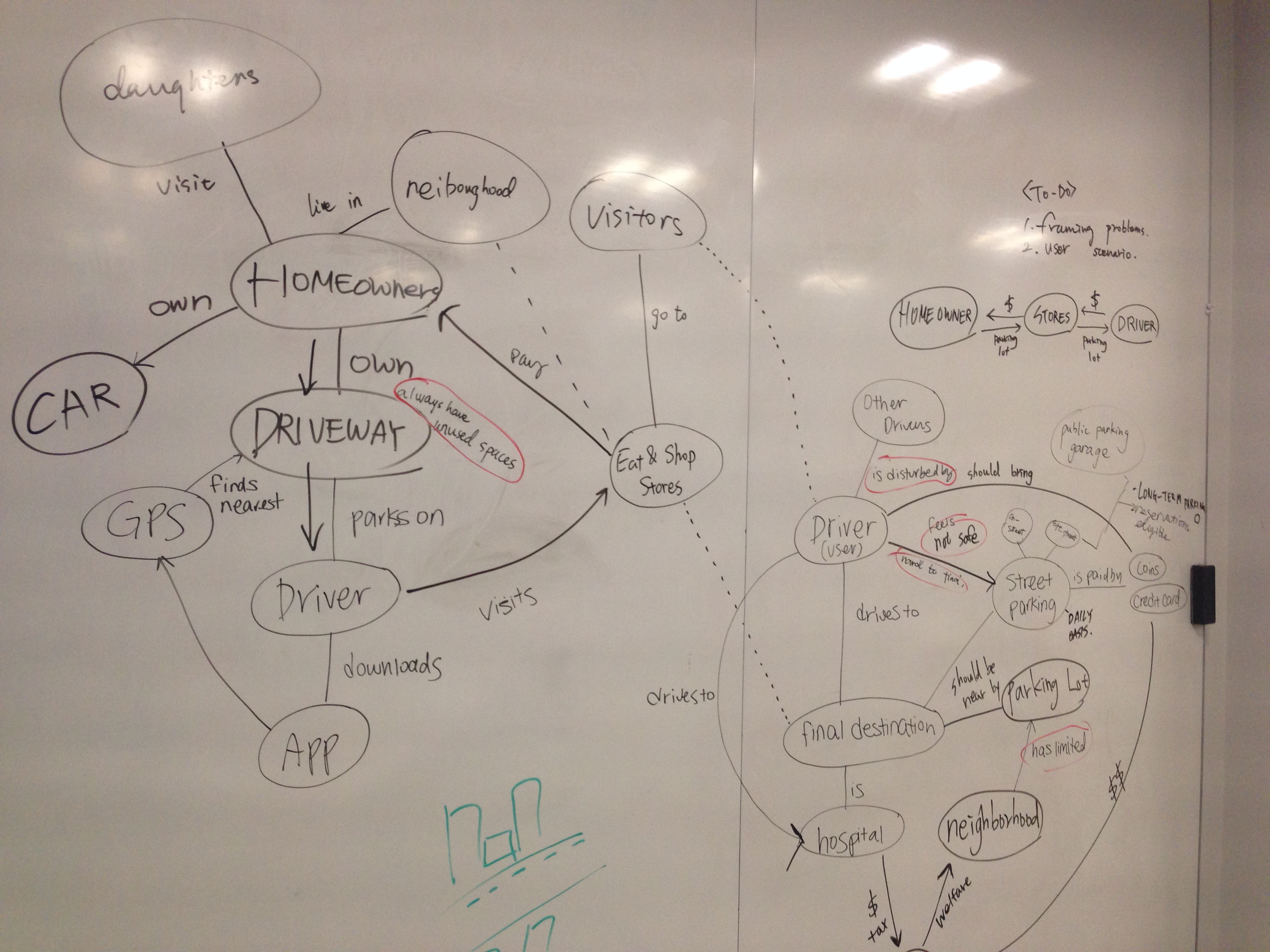 With our value flow diagram we began creating potential ideas as many as possible. Maybe providing parking spaces associated with popular local merchants that lack parking facilities?