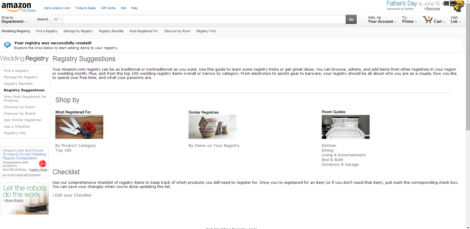 Go to Amazon Wedding Registry and hit “view registry” (or create one if you don’t have it yet) to see what the registry owner’s new experience look like.