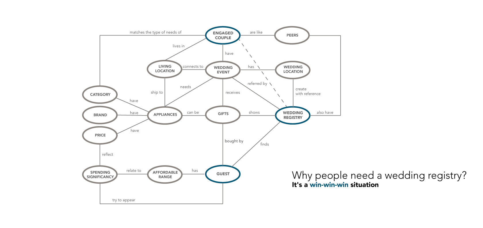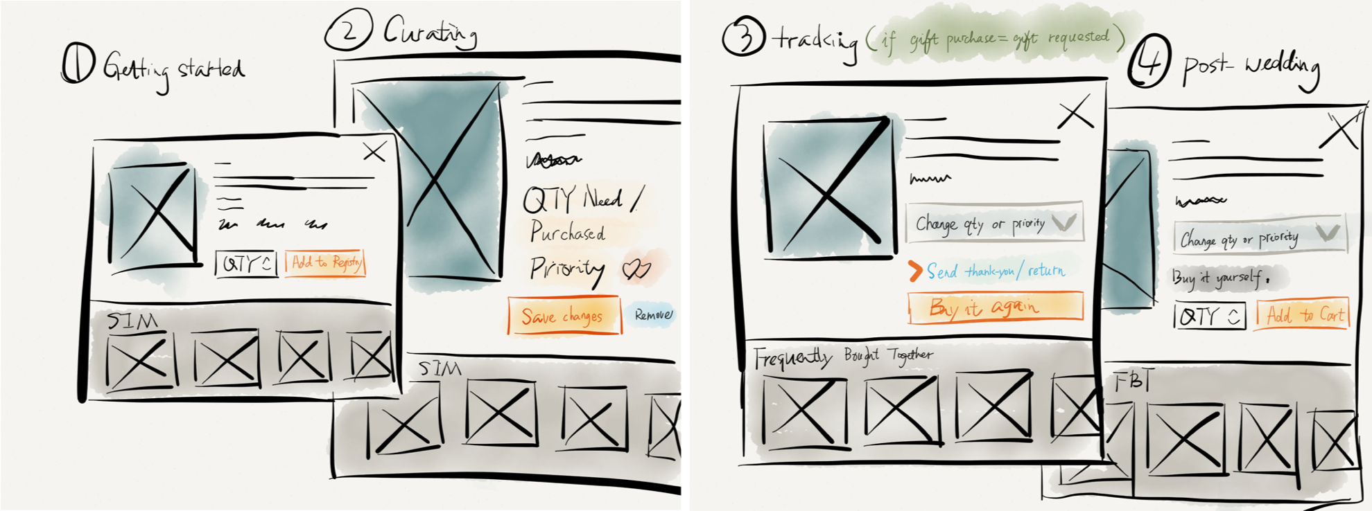 As the lead UX designer for the product, I drove the entire design process from exploration, ideation, and iteration to launch support; I helped shaping the product vision; created experience maps to align with the team as the UX guide for our product; while crafting the UX for customers of wedding registry, I also paid attention to ensure alignment of customer benefits internally with stakeholders/business goals; I led guerrilla user research in our team to help the team understand product nuances, which can better inform decisions.