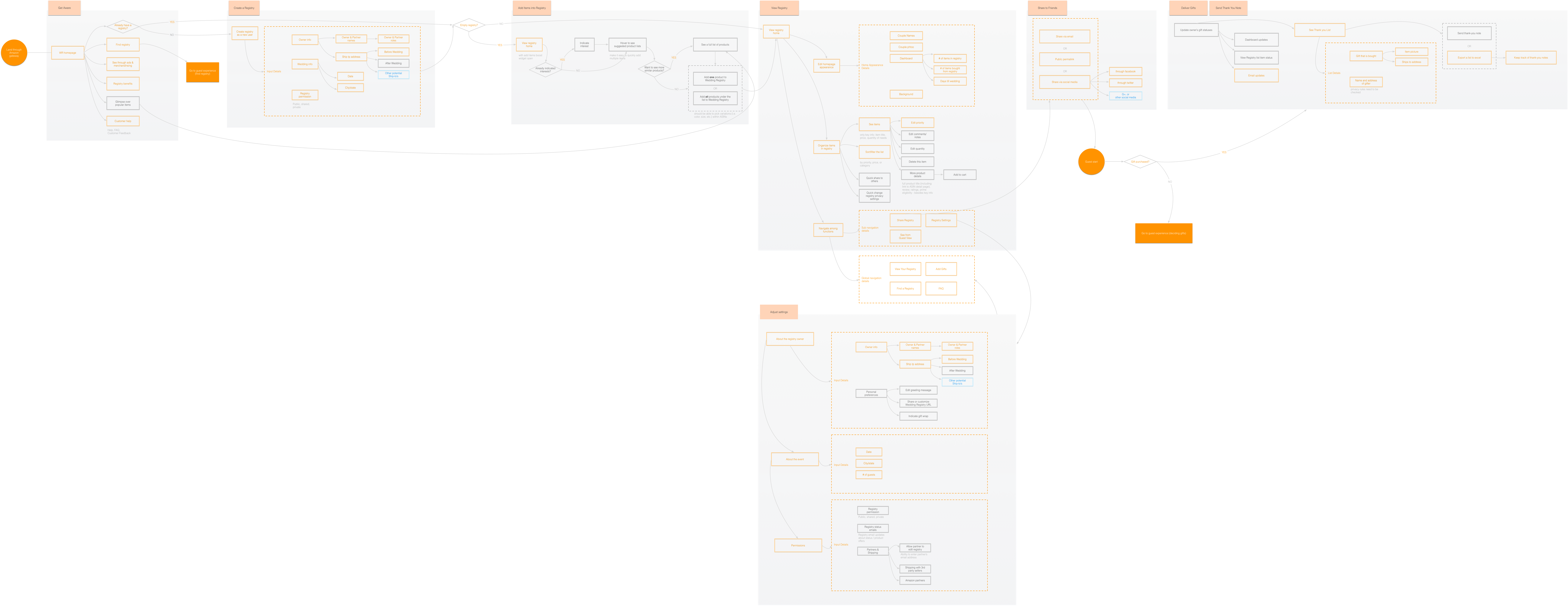 I started by rethinking the end-to-end experience, looking into past customer feedback (we have an email on the site to collect them), and reconnecting dots to chronicle all conditions around the single interaction of registering online; based on those, I sorted out the user steps & goals (what we called “tenets”), aiming to improve the customer experience alleviating our current pain points and creating an emotional connection through customizable, personal features that inspire registrants to add more items to their registry; I worked with my team and PMs to define the product concepts and use cases, experience map, key flows, and interaction patterns; when v1.0 went to the development phase, I also supported engineering cycles from UX perspective, in order to solve the challenge regarding how to build smart & lean to define first version launch for a long term vision of full redesign.
