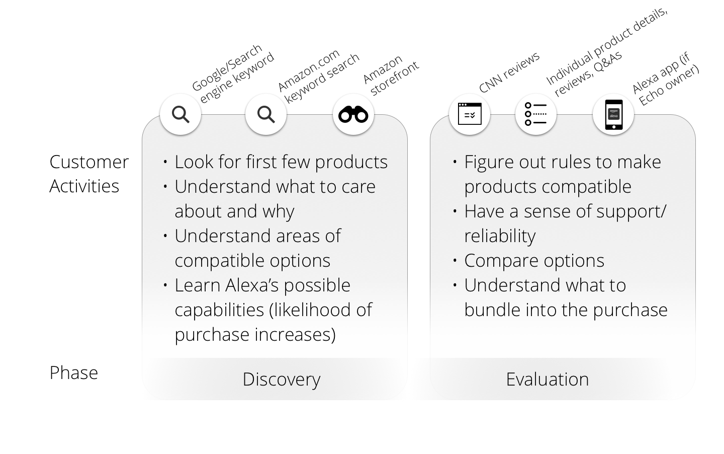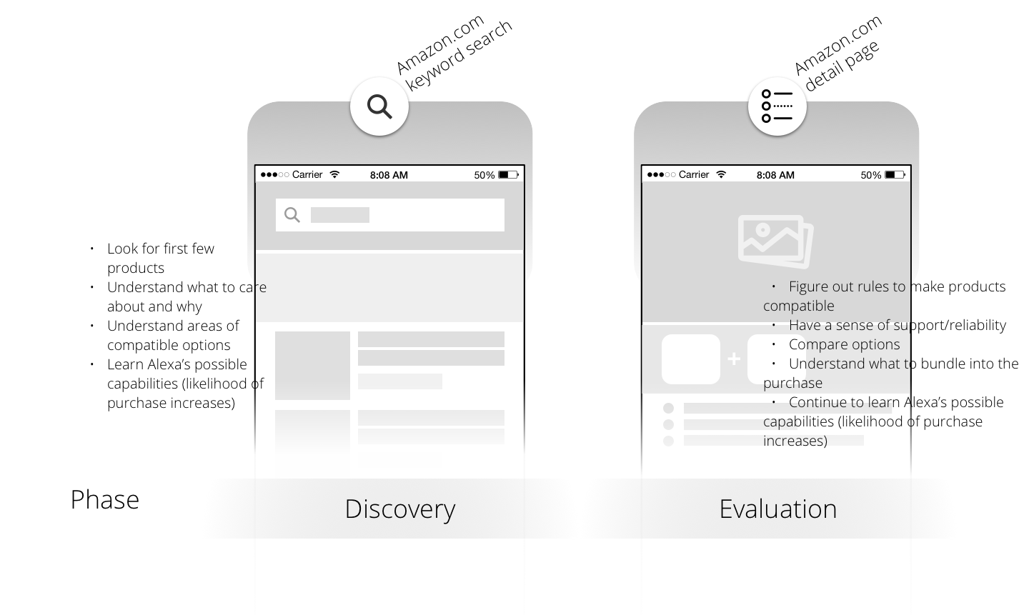 This is where I dived into the end-to-end flow, brought in search discovery pages to see how we can progressively educate customers about Alexa & the Smart Home products in the customer journey, without them feeling about the pressure not being able to purchase the “right” products. The goal is to provide customers the right level of information and action at each step.