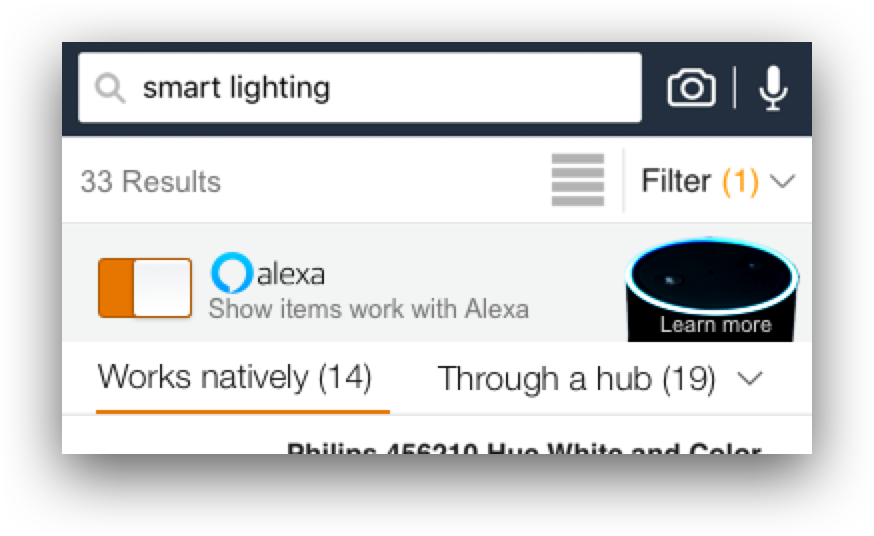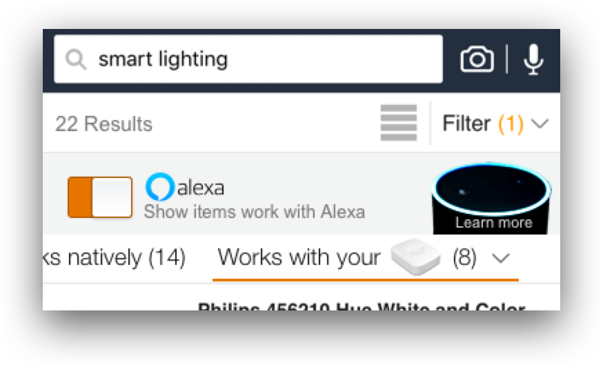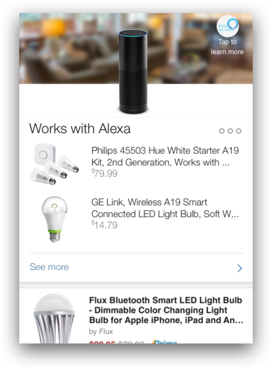 While searching by smart home related key words like “smart lighting”, the following light-weighted opening will show on top of all search results: