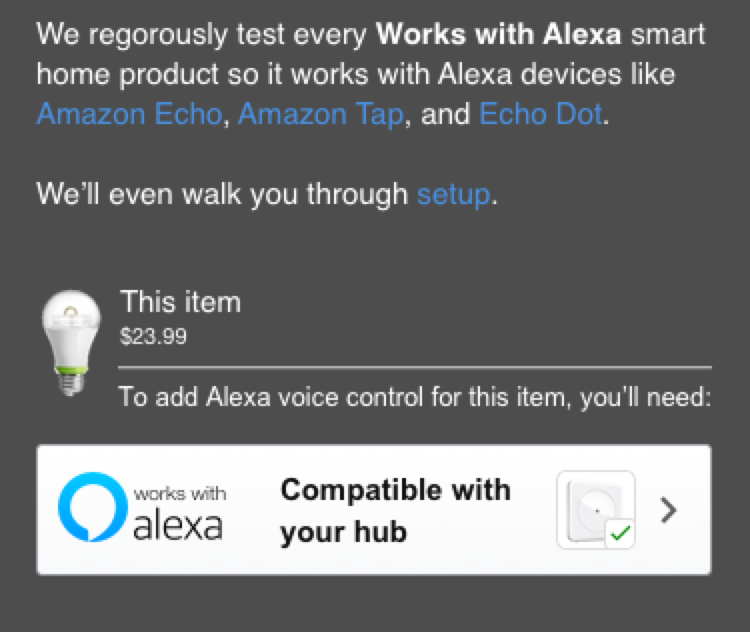 Scroll to a section later in the detail page: show how this item [Works with Alexa]; grey-out background only after clicking into it