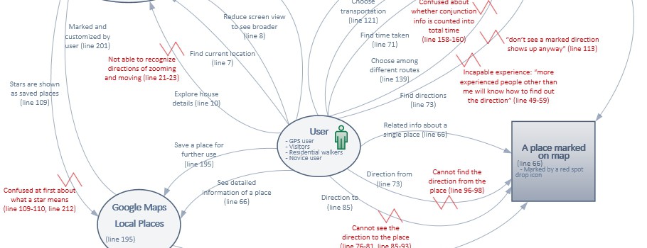 I invented some tasks to decide the focus for the users to help understand their real world needs. Then I made models directly from the transcript, in order to force summarization and conciseness for analyzing the result.