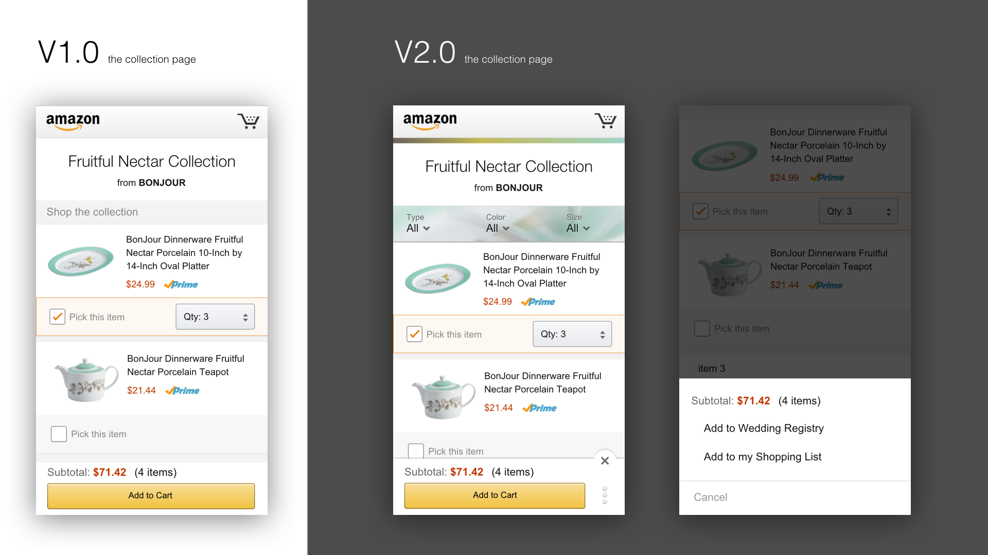 This collection includes projects I drove with mobile-first initiative in Amazon to innovate on and perfect online shopping experience, with topics that have a broad spectrum: helping customers browse & discover products in various buying scenarios, a marketplace service platform for startups to grow, empowering personalized gifting with customer’s own video footage, internal/vendor facing compatibility data relationship management portal, and a post-purchase customer journey to support the sense of a long-term ownership for Amazon shoppers.