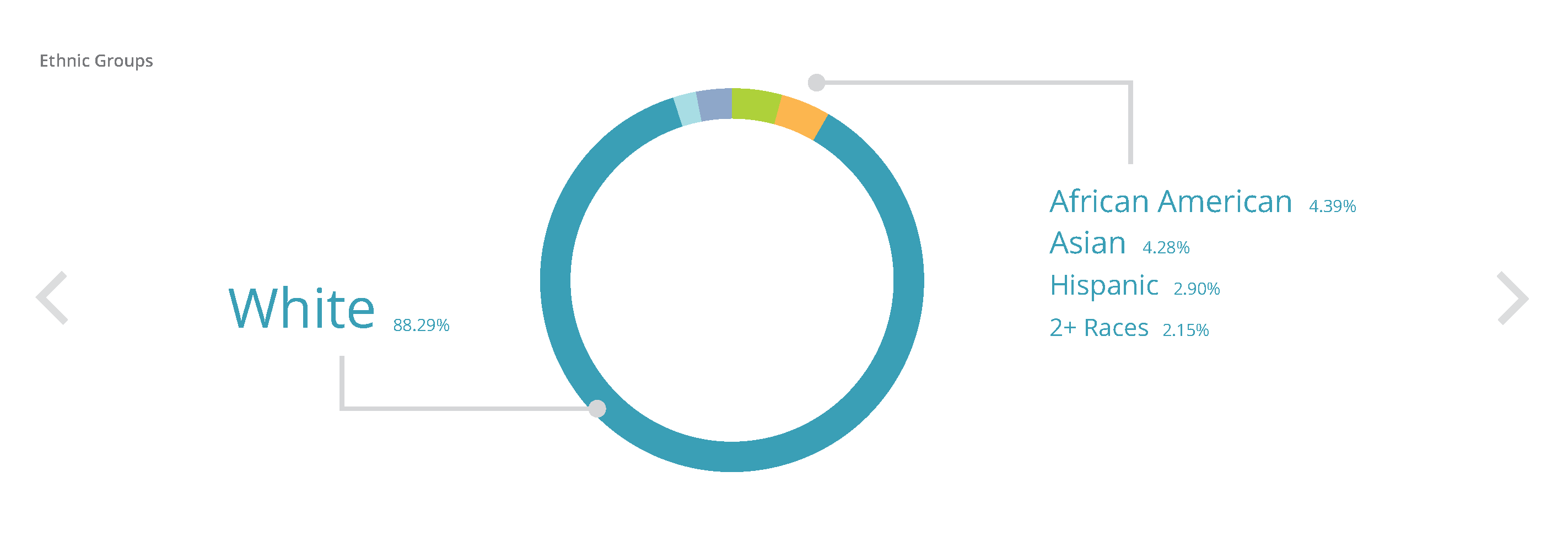 As parts of the visualizations I created, these are included in the detail page to showcase demographics information, in a 1024×354 slider frame.